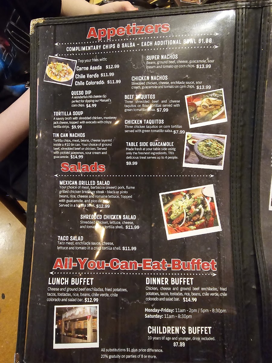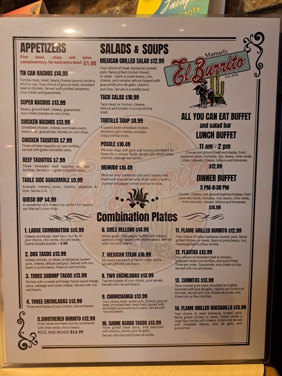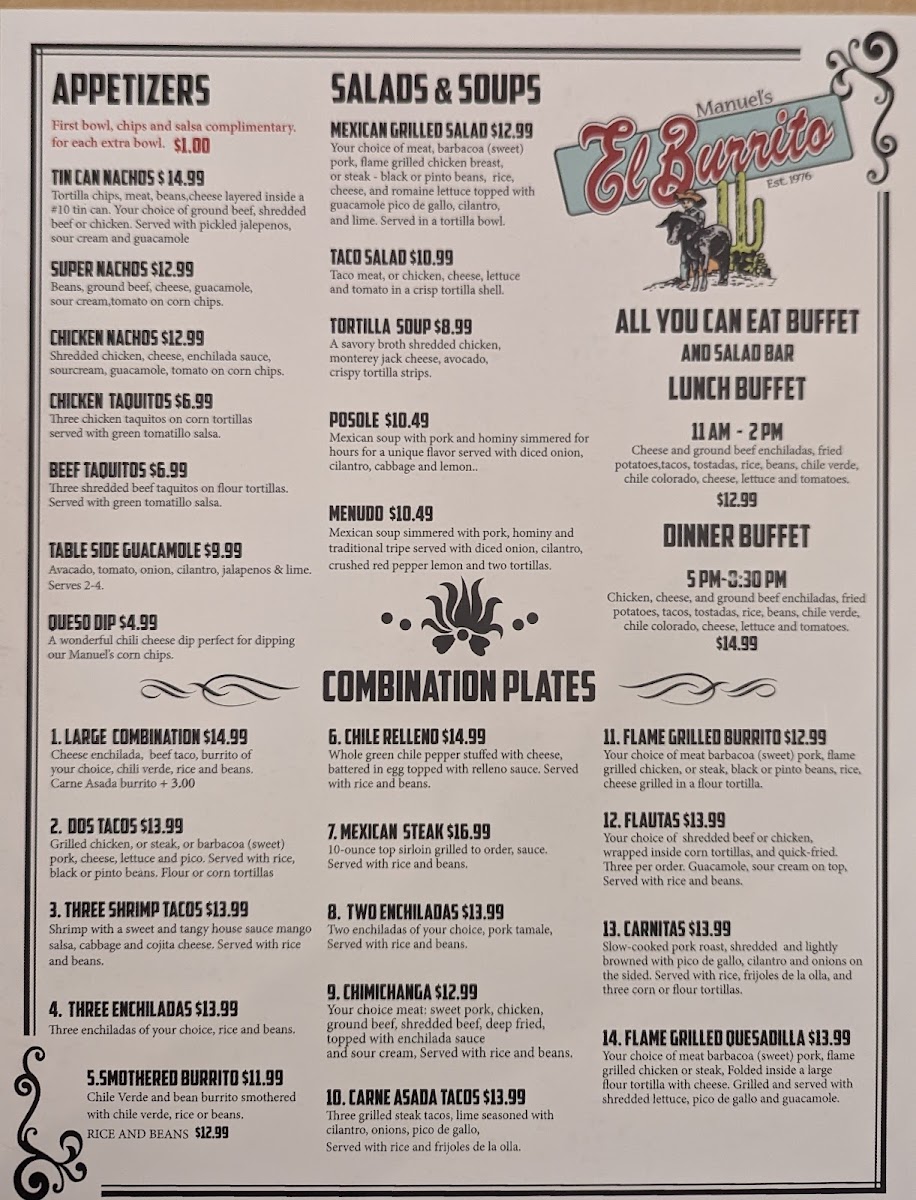 Whether you opt for the buffet or choose individual dishes like Menudo and Posole, each meal is crafted to perfection. Expect hearty, well-priced dishes paired with exemplary service. Come experience why Manuel's is a cherished local favorite!